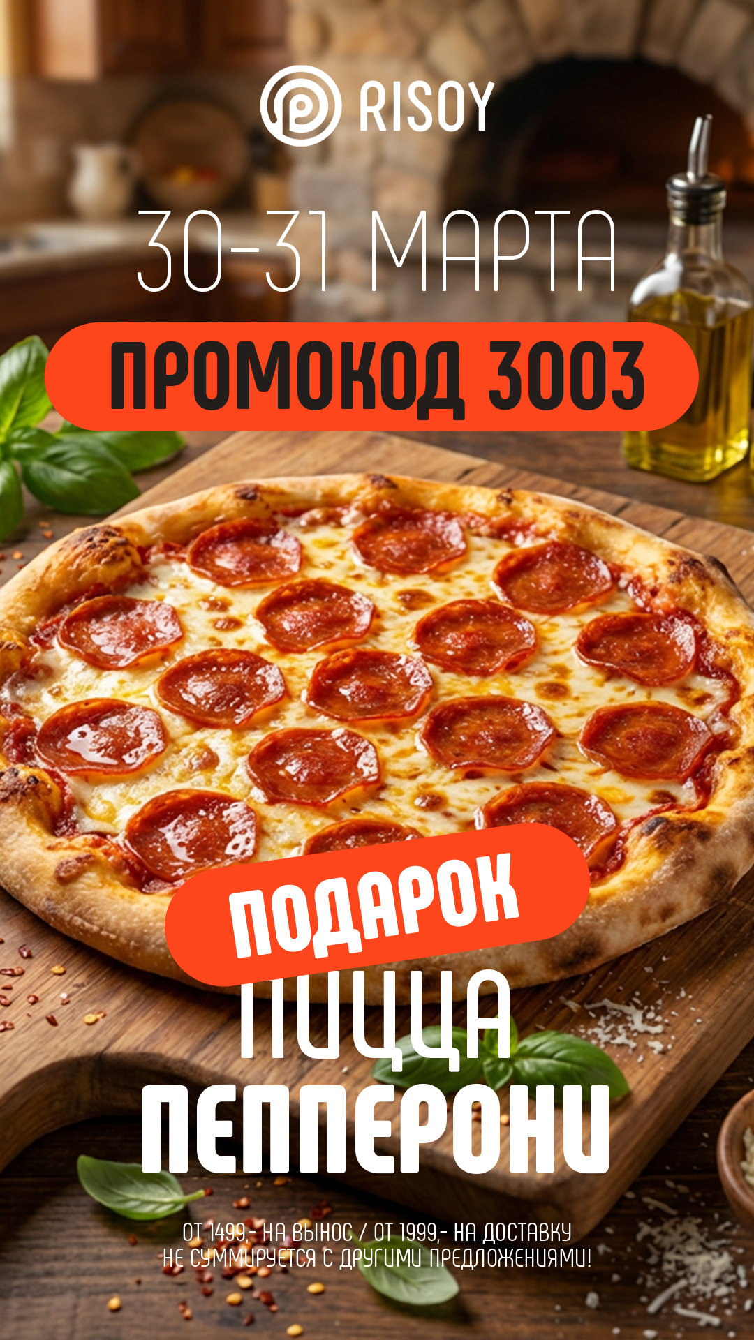 Пицца Пепперони в подарок* по промокоду 3003!